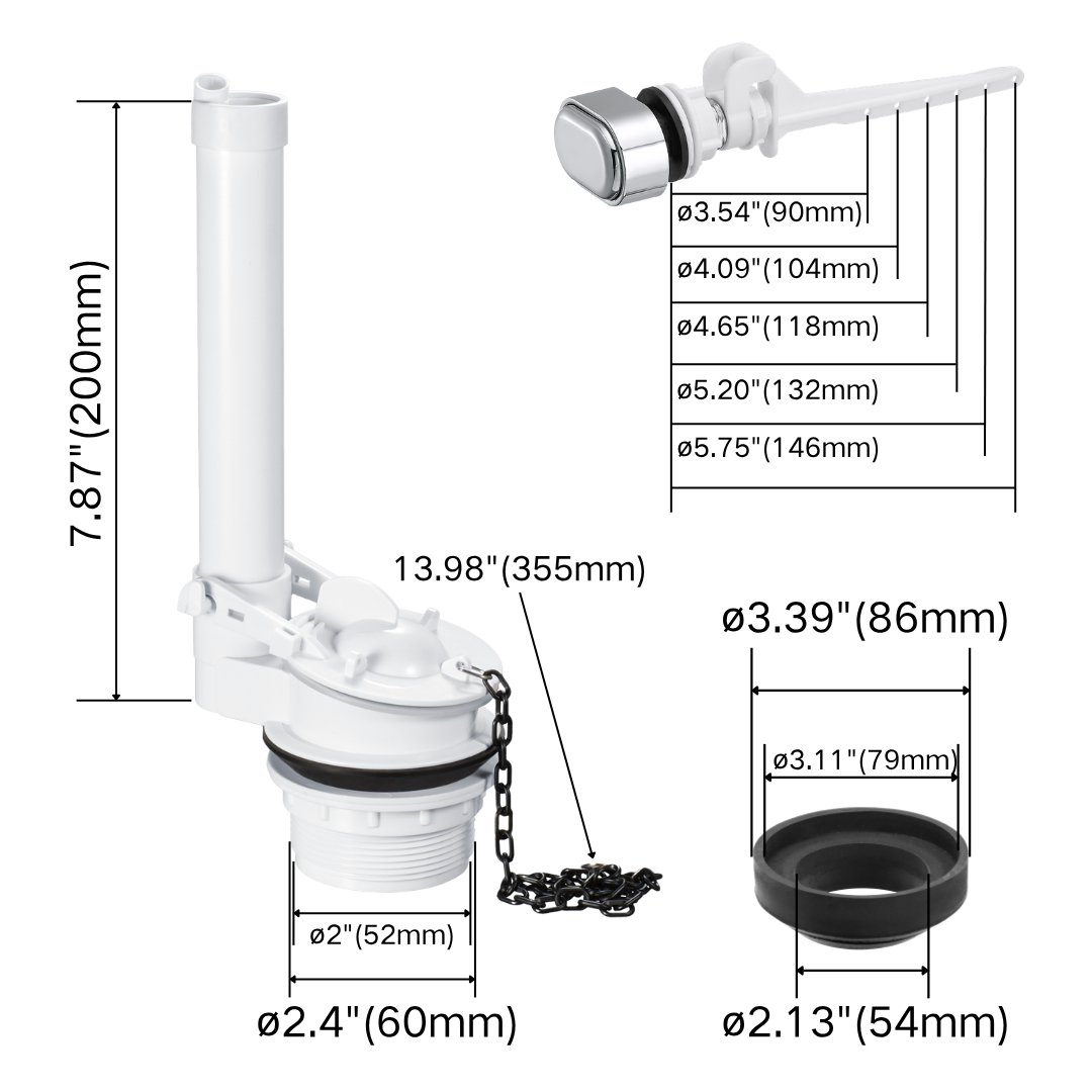 Product Name: Complete Toilet Tank Repair Kit for Two-Piece Toilets | Side Push Button, Fill Valve & 2 Inch Single Flush Valve